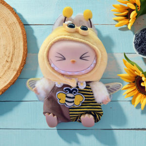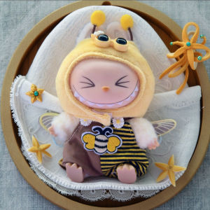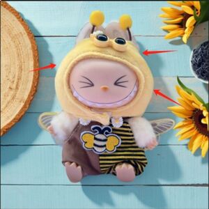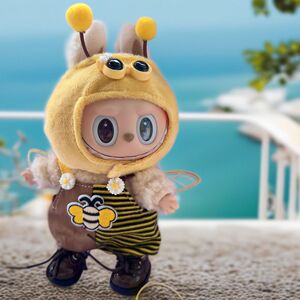 Labubu娃衣可爱小蜜蜂套装拉布布着替衣服17cm连体服连帽衣换装