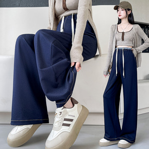 孕妇加厚针织牛仔裤秋冬新款孕妇长裤拼接裤头高腰孕妇裤阔腿裤