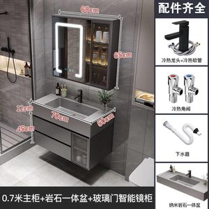 轻奢智能浴室柜陶瓷一体盆卫浴壁挂收纳洗手台防雾洗手盆柜组合
