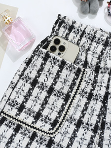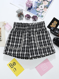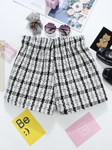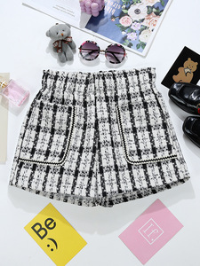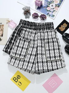 小香风粗花呢短裤女外穿跨境批发松紧腰大口袋格子外穿靴裤潮9693