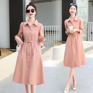 长袖衬衫连衣裙女春秋2025新款小个子感休闲气质收腰显瘦裙子
