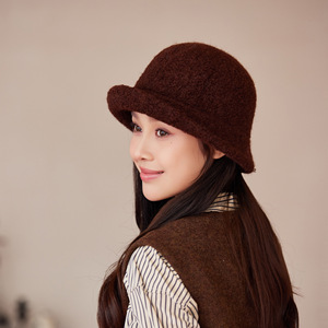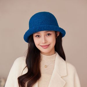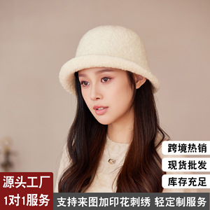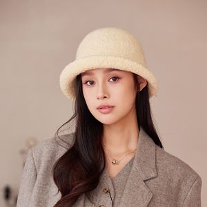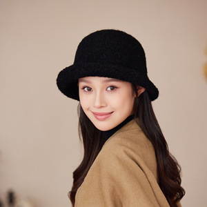 新款纯色卷边渔夫帽女秋冬季毛绒保暖盆帽户外针织时尚气质帽子潮