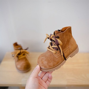 2025年秋季新款童鞋男童复古潮款机车靴英伦风真皮洋气女人时装靴
