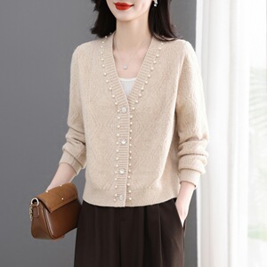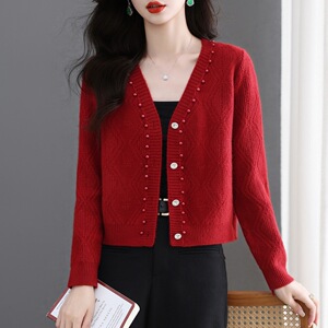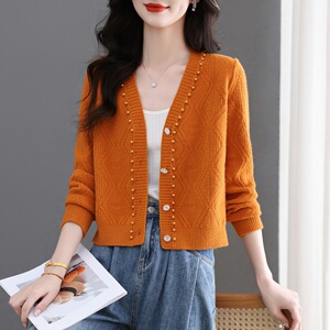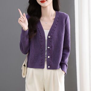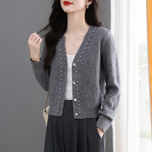 重工钉珠外套女2025小香风气质显瘦设计感上衣短款针织衫开衫外穿