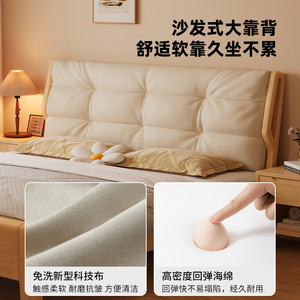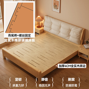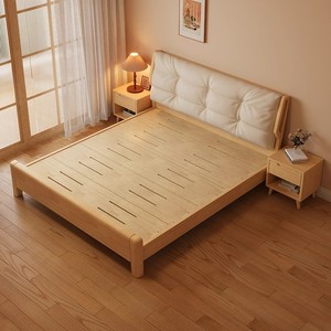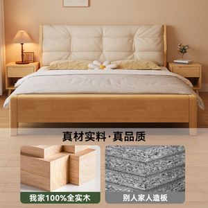 原木奶油风实木床 北欧1米8双人软包床1.2米单人床榫卯结构静音床