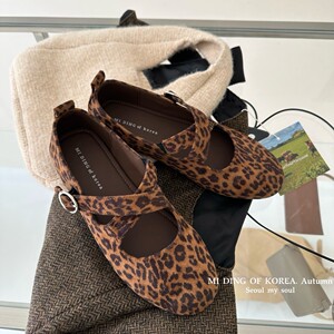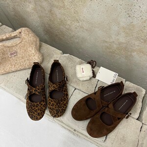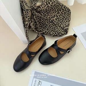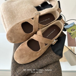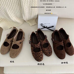 圆头磨砂皮交叉扣带通勤工作鞋复古平底浅口单鞋时尚百搭玛丽珍鞋