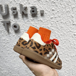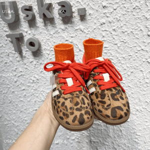 儿童德训鞋2025秋季女童时尚潮休闲鞋软底运动鞋复古豹纹低帮板鞋