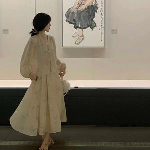 夏日花序 新中式浪漫显遮肉风甜美温柔小衫+高腰半身裙套装