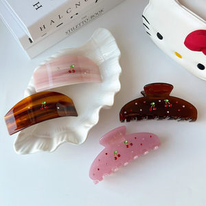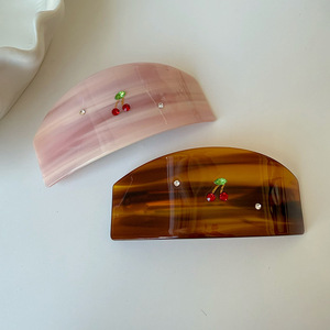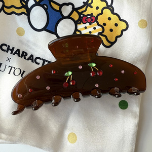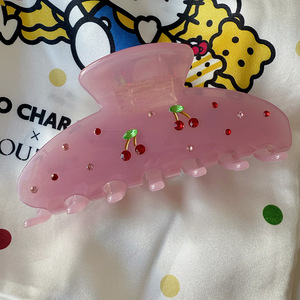 新款镶钻樱桃抓夹高级感甜美彩钻醋酸发夹女后脑勺盘发鲨鱼夹发卡
