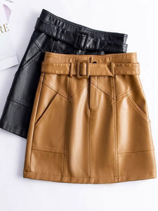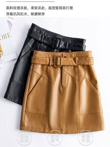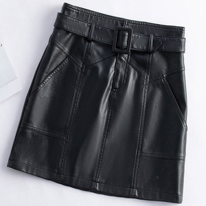 真皮皮裙女半身短裙2025春秋新款高腰系带一步裙绵羊皮a字包臀裙