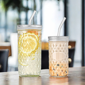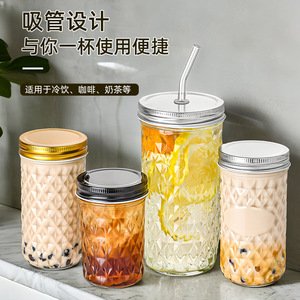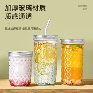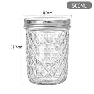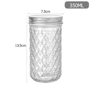 菱形纹路梅森罐分装燕窝蜂蜜银耳羹鱼子酱350ml透明玻璃瓶可耐高
