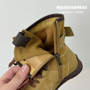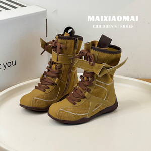 迈小迈2025年秋季新款儿童复古小众皮靴西部牛仔靴英伦风中筒靴潮