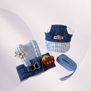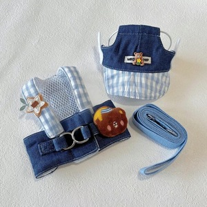 春秋宠物胸背牵引绳狗狗猫咪衣服小熊牛仔胸背可爱宠物短款可牵引