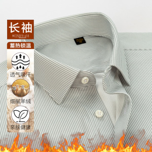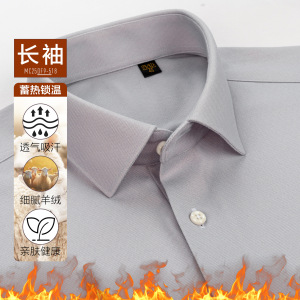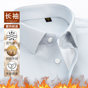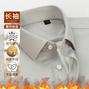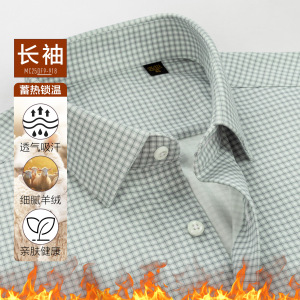 冬款加绒加厚男士保暖衬衫长袖羽绒蛋白纤维山羊绒衬衣男抗皱免烫
