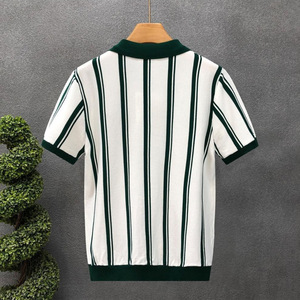 新款夏季翻领条纹针织POLO衫 男轻熟风英伦复古休闲短袖T恤上衣男