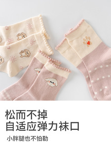 2025新品卡通女童透气秋冬袜子可爱小狗中筒袜秋季提花袜子批发