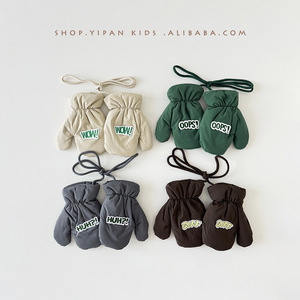 一潘 韩国儿童手套冬季ins可爱字母滑雪宝宝保暖防风挂脖手套批发