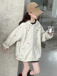 女童秋装外套2025新款女大童春秋季休闲连帽上衣儿童洋气开衫童装