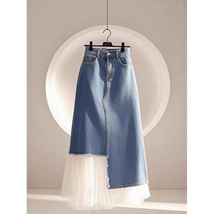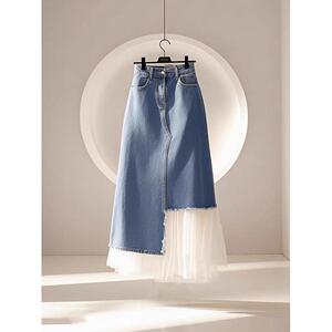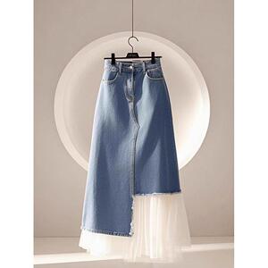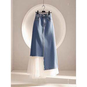 今年爆款牛仔拼接半身裙子2025夏季时尚洋气高级感高腰遮胯长裙女