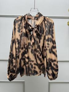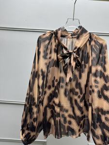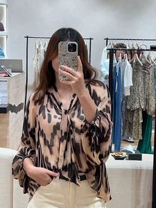 南油高货女装复古几何花韵度假风V领系带衬衫气质微透女上衣衬衣