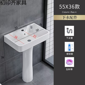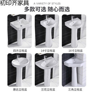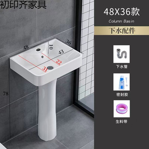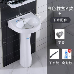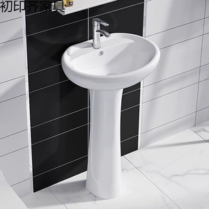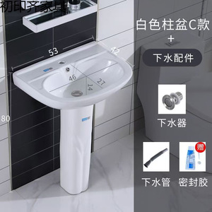 立柱家用落地式洗脸盆陶瓷阳台洗手盆迷你小户型一体落地卫生间