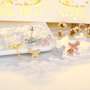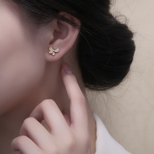 新款镂空蝴蝶耳钉气质轻奢镶钻时尚个性耳环s925银针耳钉耳饰批发