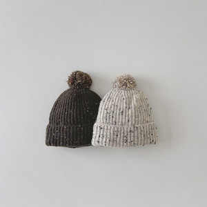 一潘 儿童帽子秋冬新款百搭花线毛球男女童针织帽宝宝保暖毛线帽
