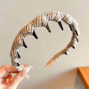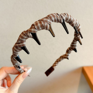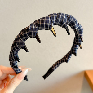 新款发箍2025韩系时尚百搭简约格纹布艺带齿细发箍个性压发箍头箍