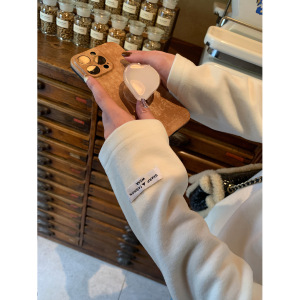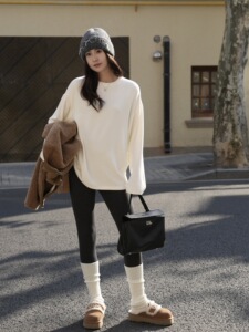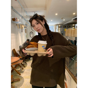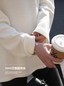 阿一 300g糯米双面绒亲肤圆领打底衫女秋季磨毛宽松白色长袖上衣