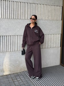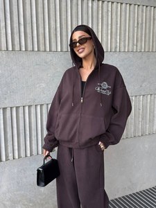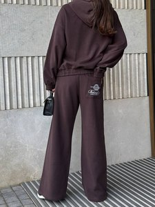 跨境美拉德新款绣花套装 插兜连帽开衫卫衣休闲直筒长裤两件套冬