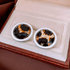 中古vintage银针切面亚克力圆形耳钉复古设计耳环设计感小众耳饰