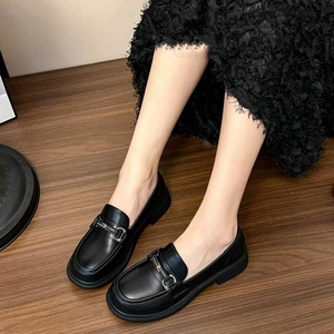 2025秋新款英伦风复古单鞋厚底乐福鞋软皮软底通勤百搭小皮鞋