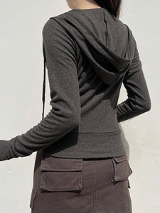 凯阔跨境欧美休闲简约纯色长袖拉链外套女装2025秋冬亚马逊独立站