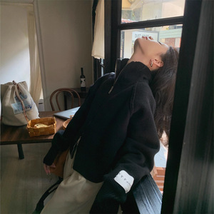 实拍 2025秋冬新款韩版百搭小立领上下拉链长袖针织贴布毛衣外套