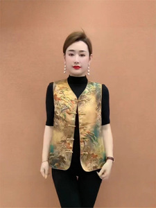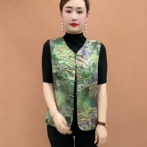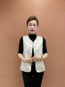 中式国风气质马甲时尚复古提花坎肩背心盘扣女装新款妈妈无袖上衣