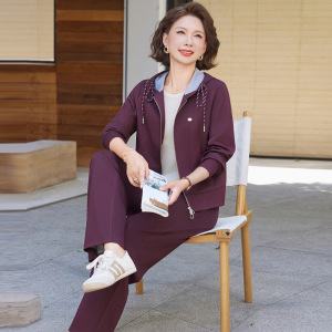 2025新款中老年女装运动套装妈妈秋装连帽外套秋季休闲上衣两件套