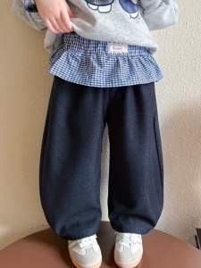 女童休闲裤子春秋装2025新款儿童韩版小女孩时髦格子屁帘弯刀裤子