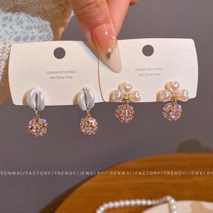 韩系甜美气质珍珠花朵耳环女轻奢小众设计感耳钉网红精致百搭耳饰