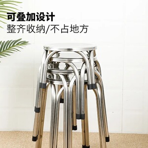 不锈钢四脚凳子家用圆凳户外饭店餐桌地摊椅子高凳简约金属板凳