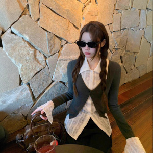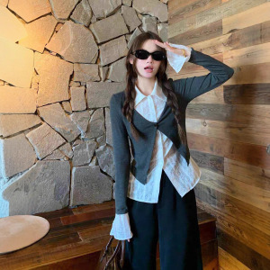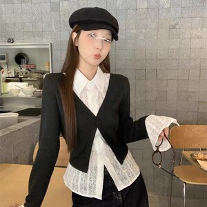 P98203拼接蕾丝假两件衬衫长60-仅供货经销商不退换
