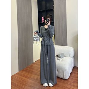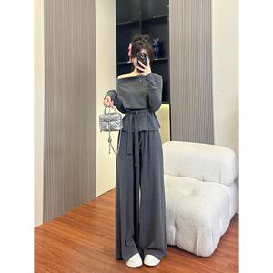 早秋新款休闲时尚套装阔腿裤秋季轻熟风INS风显瘦其它串珠印染