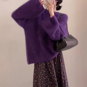 2025秋冬新款仿貂绒软糯宽松毛绒圆领长袖毛衣针织衫打底外穿女潮
