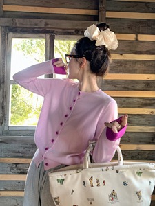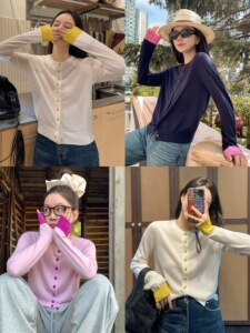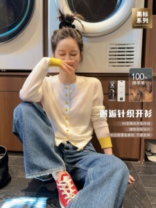 莉贝琳sisy店主自留~黑标邂逅针织衫美利奴全羊毛撞色长袖上衣女