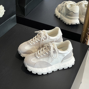 2025秋季新款小个子8cm厚底内增高德训鞋女休闲运动系带阿甘鞋