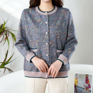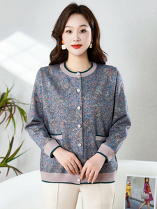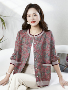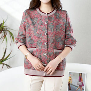 2025中老年装新款妈妈春秋时尚百搭花色圆领宽松针织开衫奶奶外套
