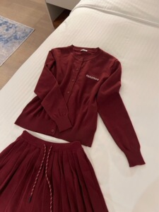 mm25秋冬新款减龄提花字母针织外套➕百褶裙短裙套装 4色