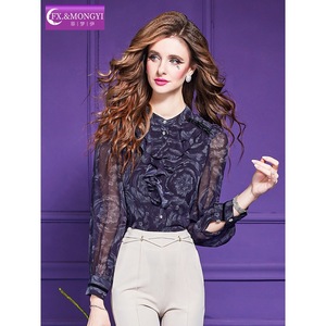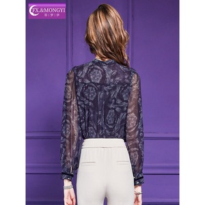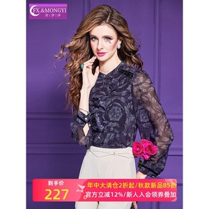 菲梦伊印花荷叶边衬衫女长袖秋装高级独特设计感轻熟气质职业上衣