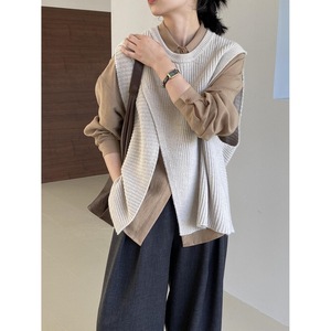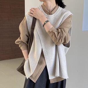 秋季2025新款马甲开叉设计圆领毛衣背心复古显瘦长袖衬衫两件套装