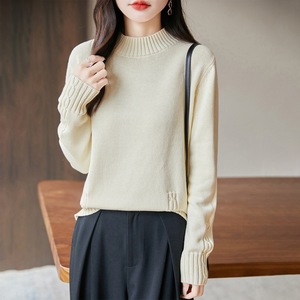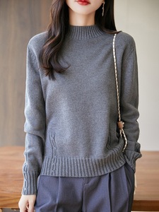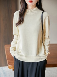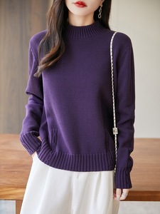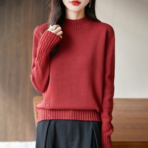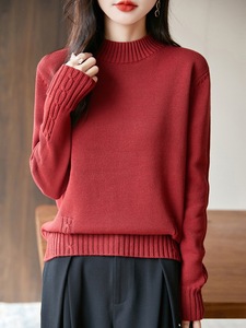 跨境2025秋冬新款纯棉线半高领针织衫长袖女纯色扭花宽松打底衫冬