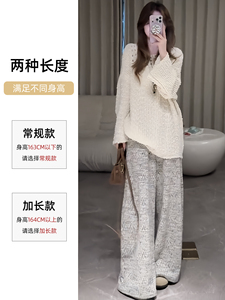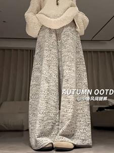灰色小香风阔腿裤女秋季2025新款小个子高腰显瘦休闲慵懒风直筒裤